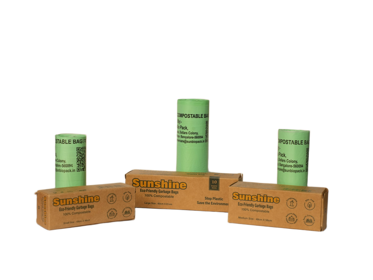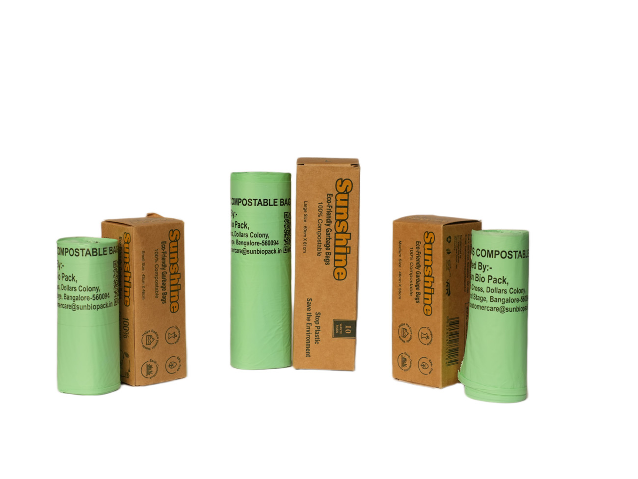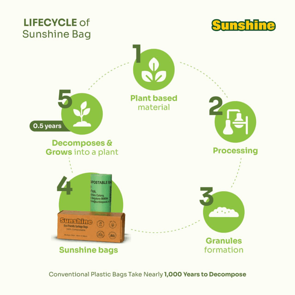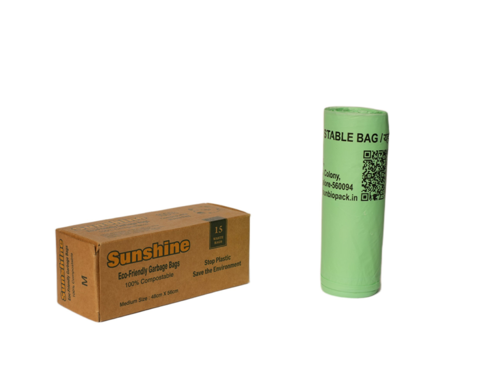 That’s why we created Sunshine Garbage Bags — our flagship product and India’s trusted name in 100% compostable garbage bags. Designed to replace conventional plastic waste bags, these eco-friendly alternatives are made from natural, plant-based materials that break down safely and efficiently in composting environments.
